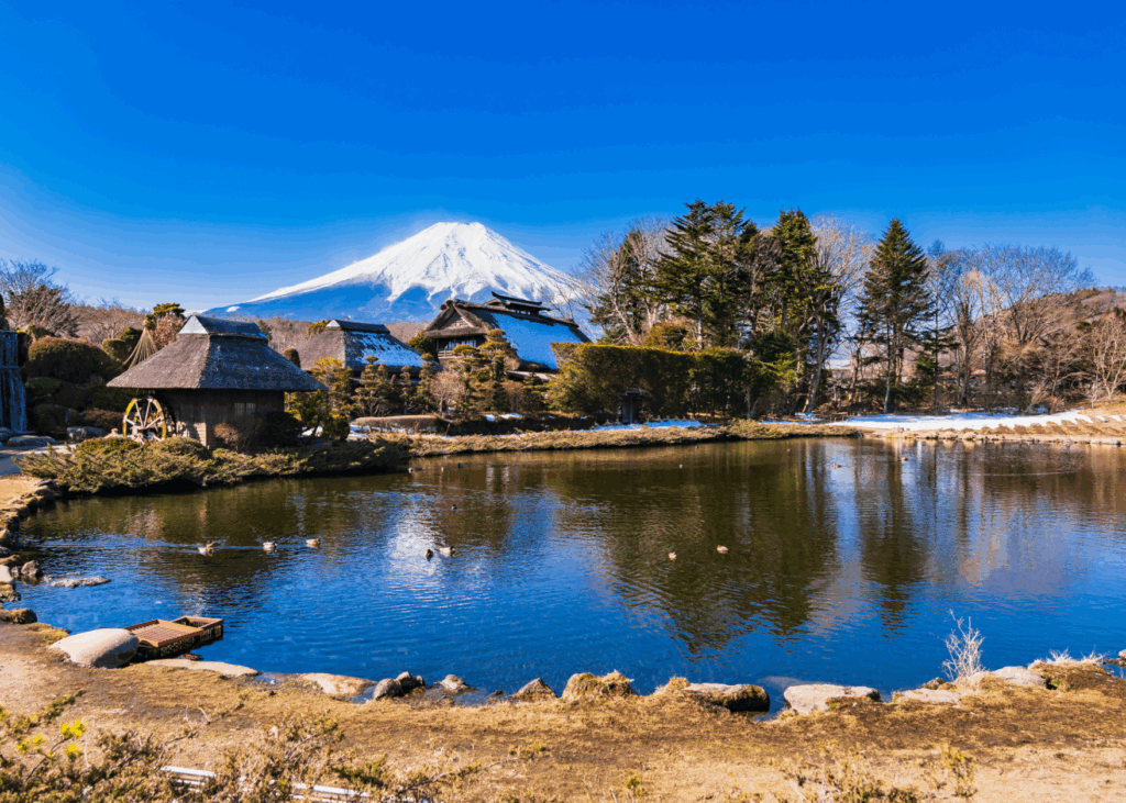 デッキに出れば、目の前に広がる青空と富士の稜線。